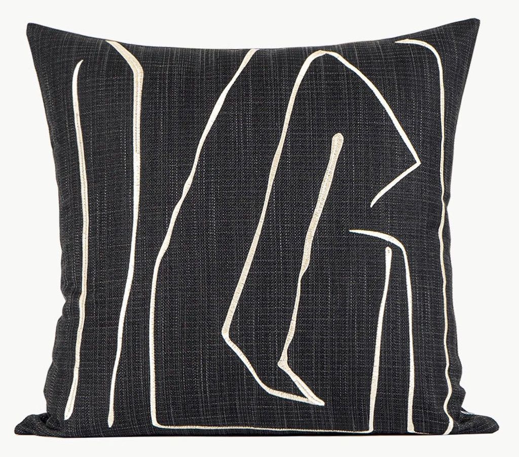 Geometric Square Modern Throw Pillows for Couch, Abstract Black Decorative Throw Pillows, Large Contemporary Throw Pillow for Interior Design