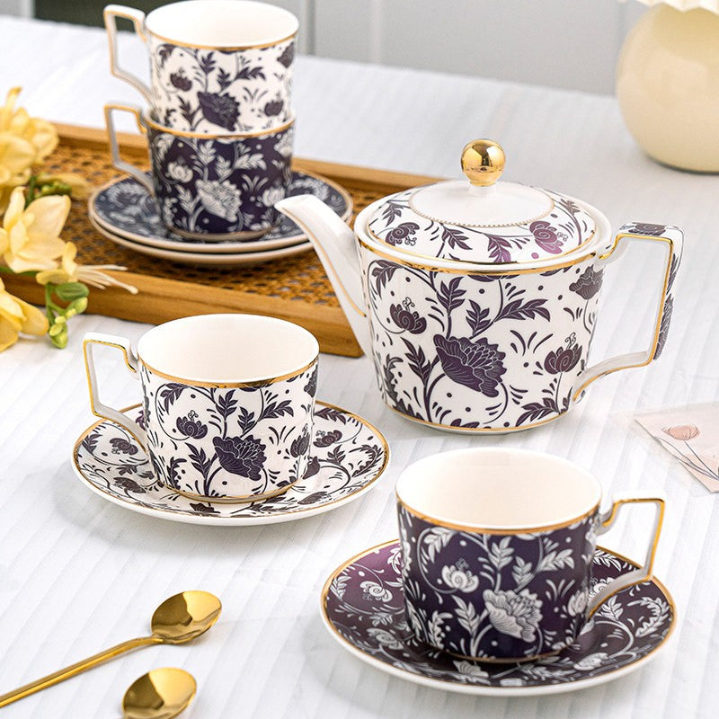 This Tea Cup Set includes 4 Tea Cups, 4 Saucers, 4 Spoons and 1 Teapot