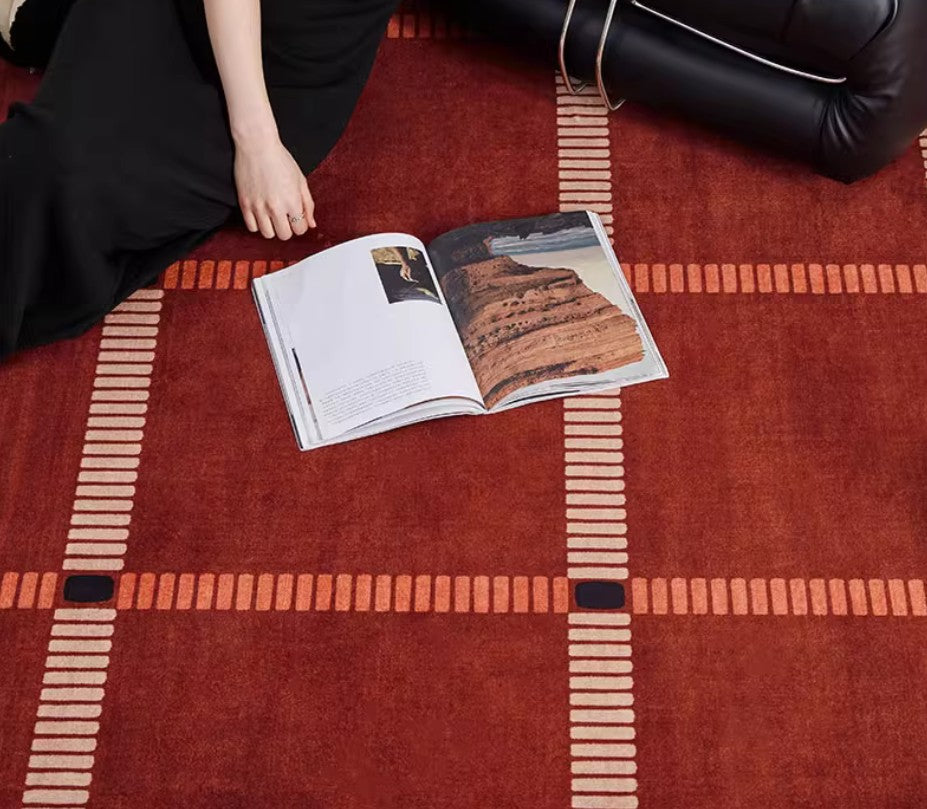 Abstract Area Rugs for Living Room, Geometric Contemporary Modern Carpets Next to Bed, Mid Century Red Rugs under Dining Room Table