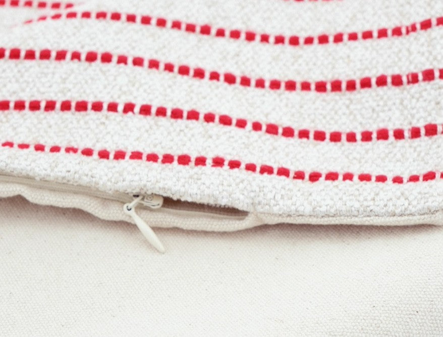 All pillow covers are sewn professionally, over-locked with finished edges to prevent fraying and has invisible zipper enclosures. This provides long lasting, durable covers that will stay straight and beautiful over time, which makes for a clean professional look.