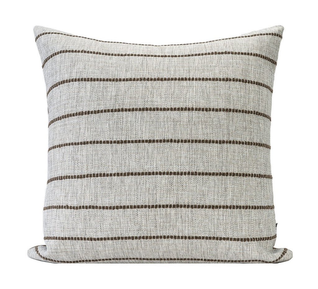 All pillow covers are sewn professionally, over-locked with finished edges to prevent fraying and has invisible zipper enclosures. This provides long lasting, durable covers that will stay straight and beautiful over time, which makes for a clean professional look.