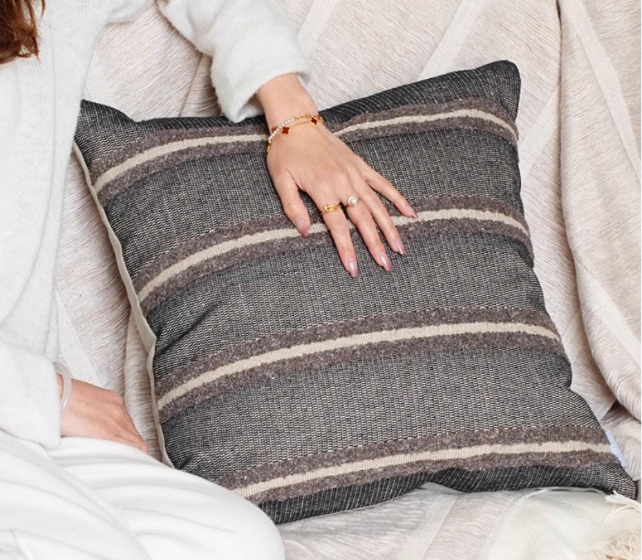 Pillow Cover Front Side: 16% Polyester + 16% Linen + 11% Wool + 32% Cotton + 13% Acrylc + 12% Viscose