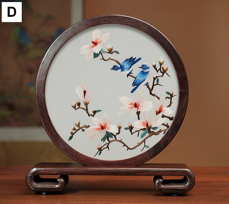 Creative Birthday Gift, Flower and Birds Embroidery Ornaments, Traditional Chinese Suzhou Silk Embroidered Ornament, Premium Souvenir, Exclusive Business Presents