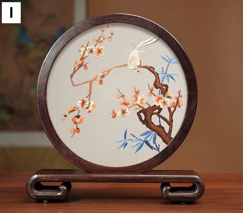 Unique Birthday Gift, Traditional Chinese Suzhou Silk Embroidered Ornament, Premium Souvenir, Exclusive Business Presents, Flower and Bird Embroidery Ornaments