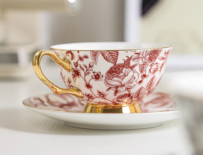Creative Porcelain Tea Cup Sucer Set, Beautiful British Tea Cups, Elegant Flower Ceramic Cups, Unique Royal Coffee Cup and Saucer