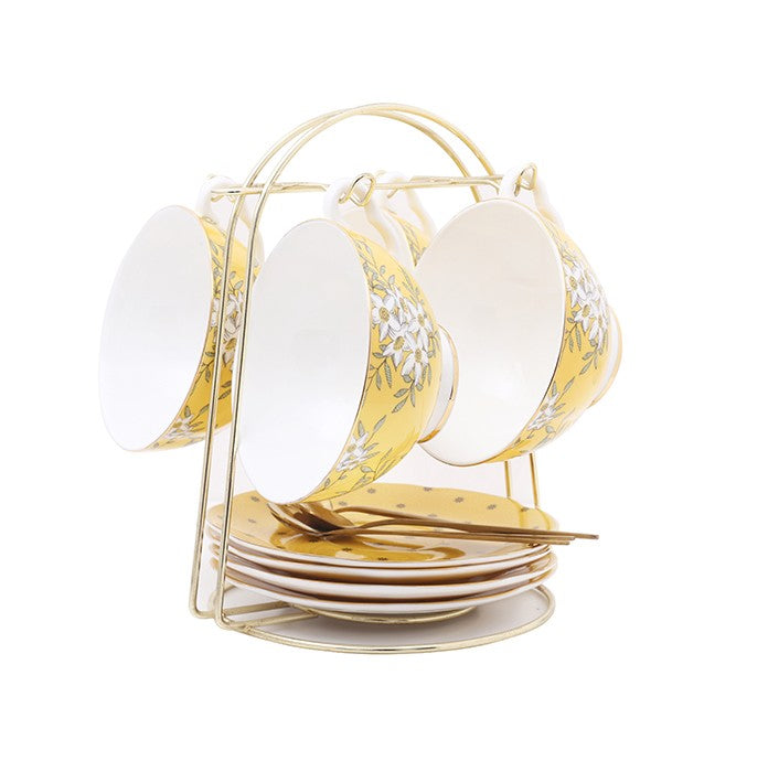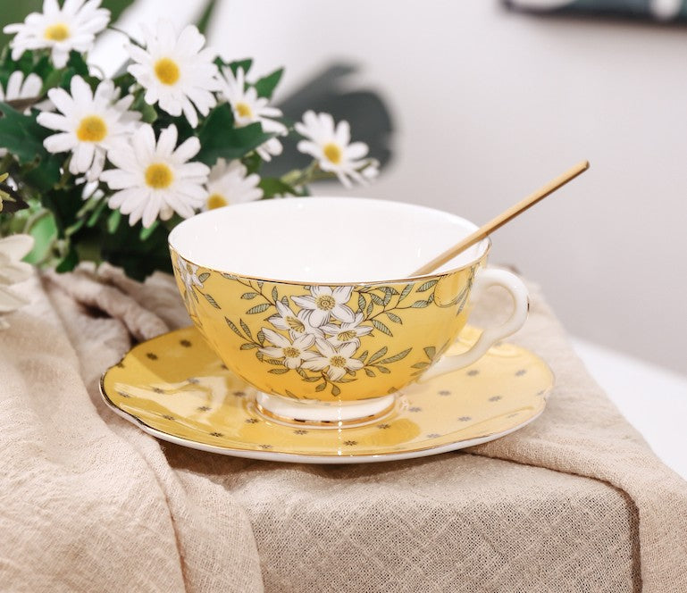 Creative Yellow Ceramic Coffee Cups, Unique Flower Coffee Cup and Saucer, Beautiful British Tea Cups, Creative Porcelain Tea Cup Set