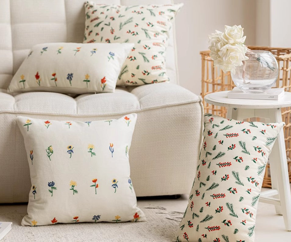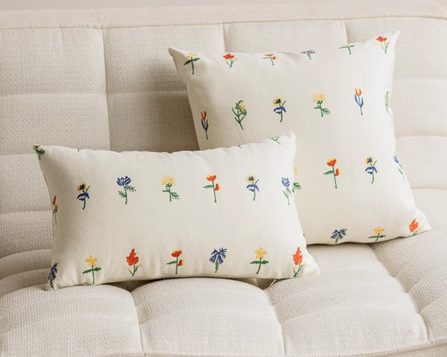 Decorative Pillows for Couch, Farmhouse Decorative Pillows for Sofa, Embroider Flower Cotton Pillow Covers, Spring Flower Decorative Pillows for Bedroom