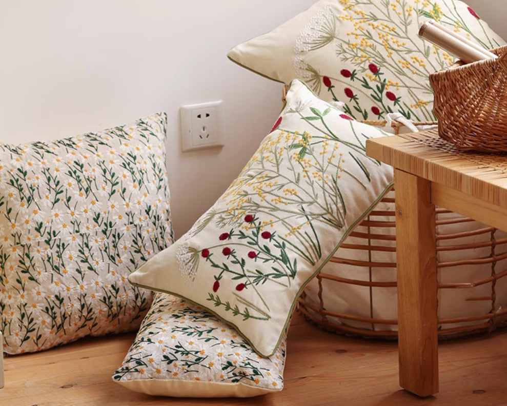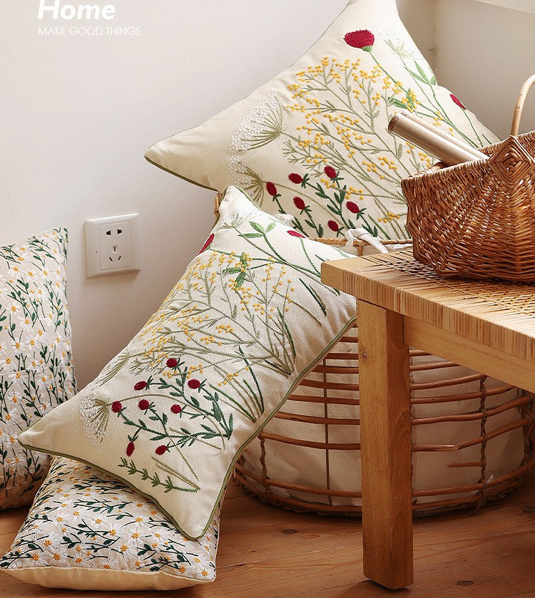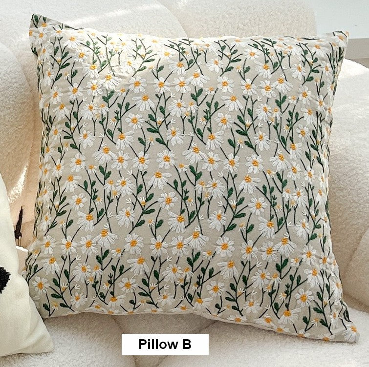 Decorative Pillows for Couch, Farmhouse Decorative Pillows for Sofa, Embroider Flower Cotton Pillow Covers, Spring Flower Decorative Pillows for Bedroom-LargePaintingArt.com