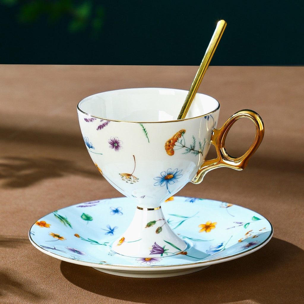 Elegant British Ceramic Coffee Cup with Saucer, 6.8 oz Tea Cup and Saucer Set in Gift Box, Floral Porcelain Tea Cup and Saucer Set, Flower Ceramic Tea Cup and Saucer