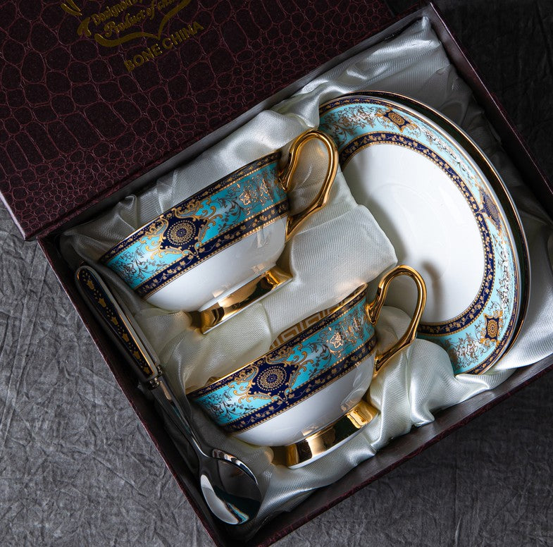 Elegant British Ceramic Coffee Cups, Porcelain Tea Cup Set for Office, Unique Tea Cup and Saucer in Gift Box