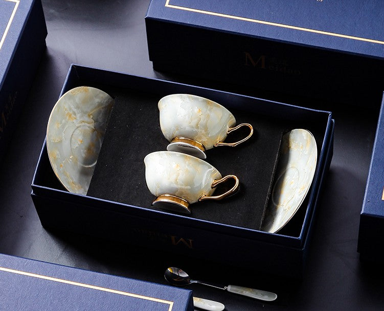 Elegant Ceramic Coffee Cups, 6.8 oz Tea Cup and Saucer in Gift Box as Birthday Gift, Beautiful British Tea Cups, Royal Porcelain Tea Cup Set