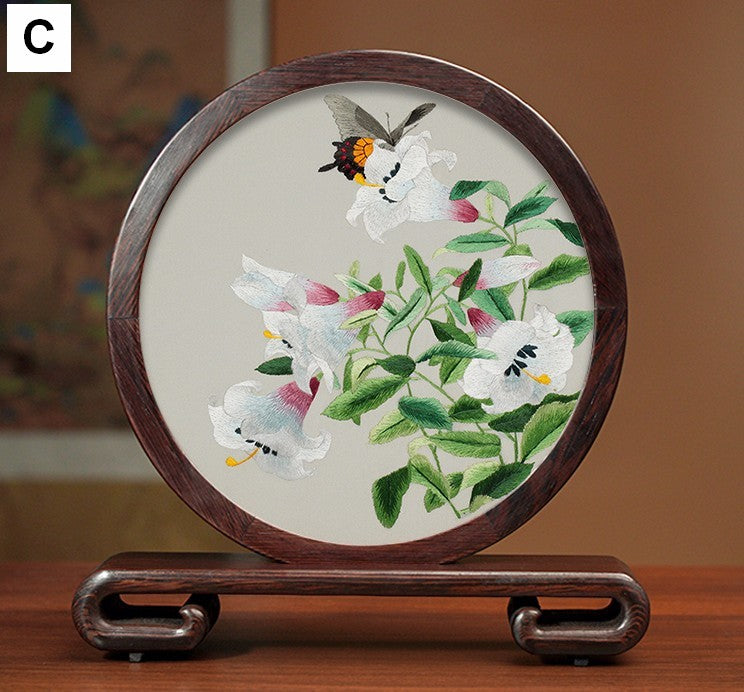 Elegant Silk Embroidery Ornaments, Traditional Chinese Suzhou Flower and Birds Silk Embroidery, Exclusive Business Presents, Creative Birthday Gift, Premium Souvenir