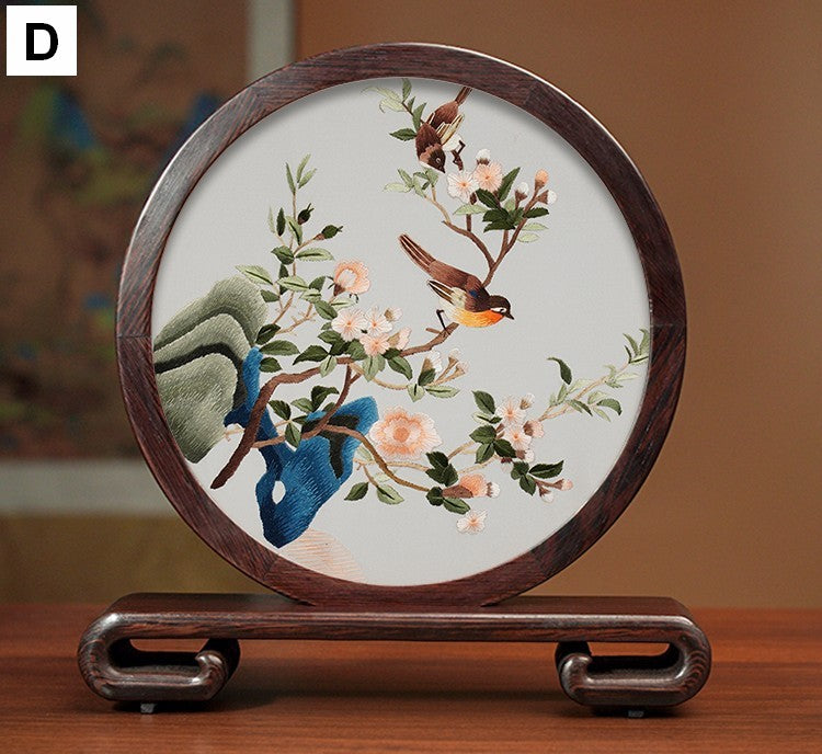 Unique Birthday Gift, Traditional Chinese Suzhou Silk Embroidered Ornament, Premium Souvenir, Exclusive Business Presents, Flower and Bird Embroidery Ornaments