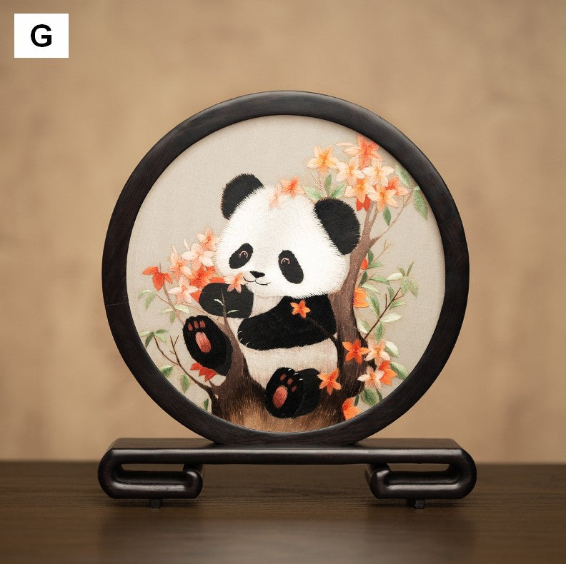 Exclusive Business Present Panda Embroidered Decor, Traditional Chinese Suzhou Embroidery Ornament, Premium Souvenir, Unique Birthday Gift-LargePaintingArt.com