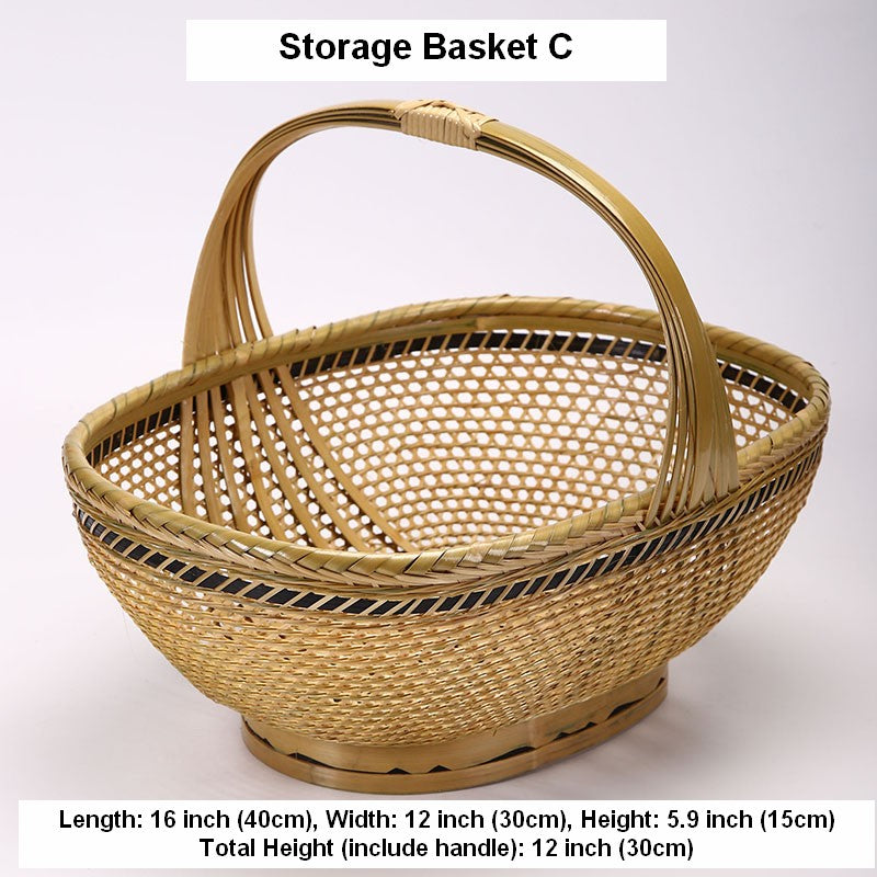 Lovely Bamboo Baskets for Vegetable, Extra Large Picnic Food Basket with Handle, Natural Hand-woven Bamboo Basket, Natural Fruit Basket, Kitchen Storage Baskets