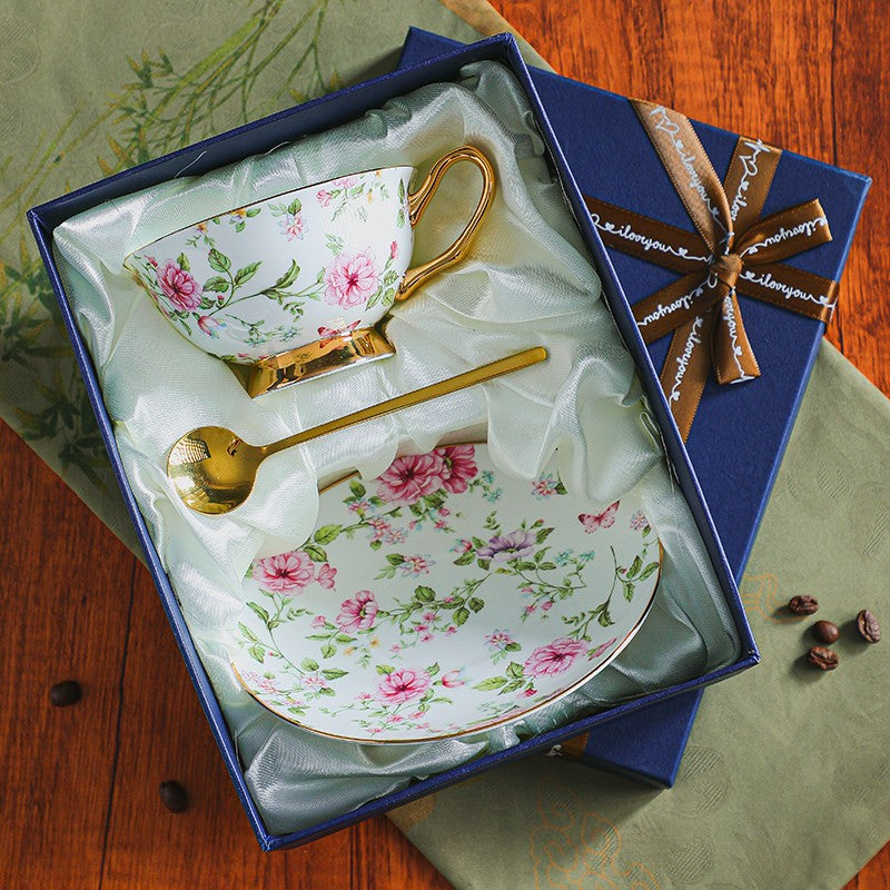 Floral Porcelain Tea Cup and Saucer Set, Ceramic Coffee Cup with Saucer, Traditional English Tea Cup and Saucer Set, Afternoon British Tea Cup with Saucer