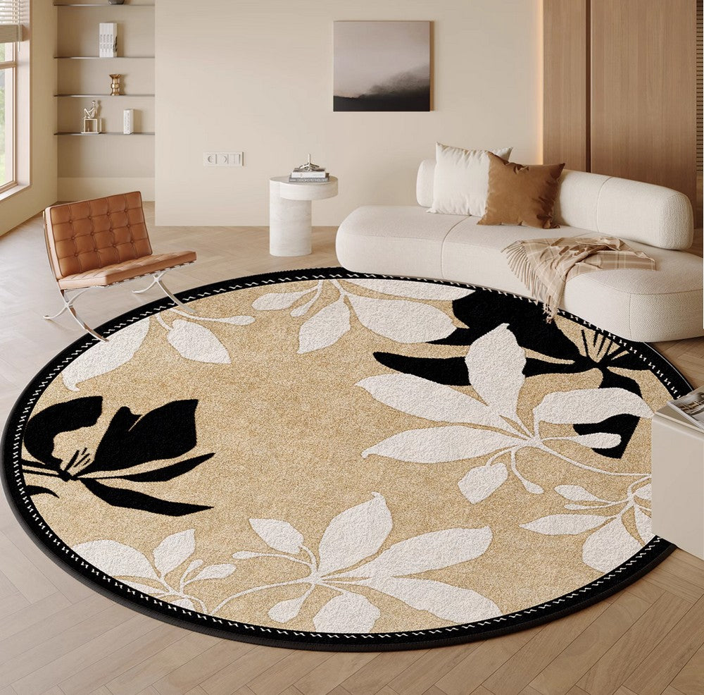 Contemporary Modern Rugs, Flower Pattern Circular Modern Rugs under Chairs, Geometric Round Rugs for Dining Room, Bedroom Abstract Modern Area Rugs