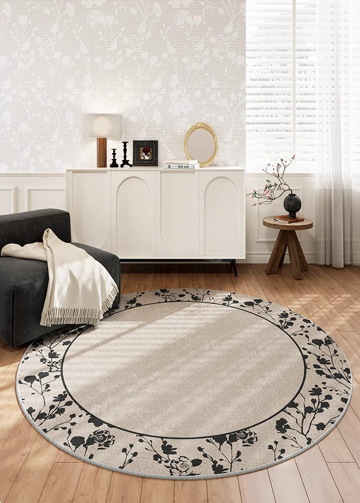 Flower Pattern Round Carpets under Coffee Table, Contemporary Round Rugs for Dining Room, Circular Modern Rugs for Living Room, Modern Area Rugs for Bedroom