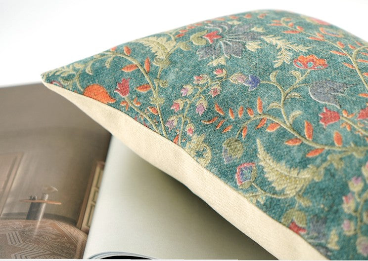 Garden Flowers Pattern Decorative Throw Pillows, Geometric Contemporary Square Modern Throw Pillows for Couch, Large Green Throw Pillow for Interior Design