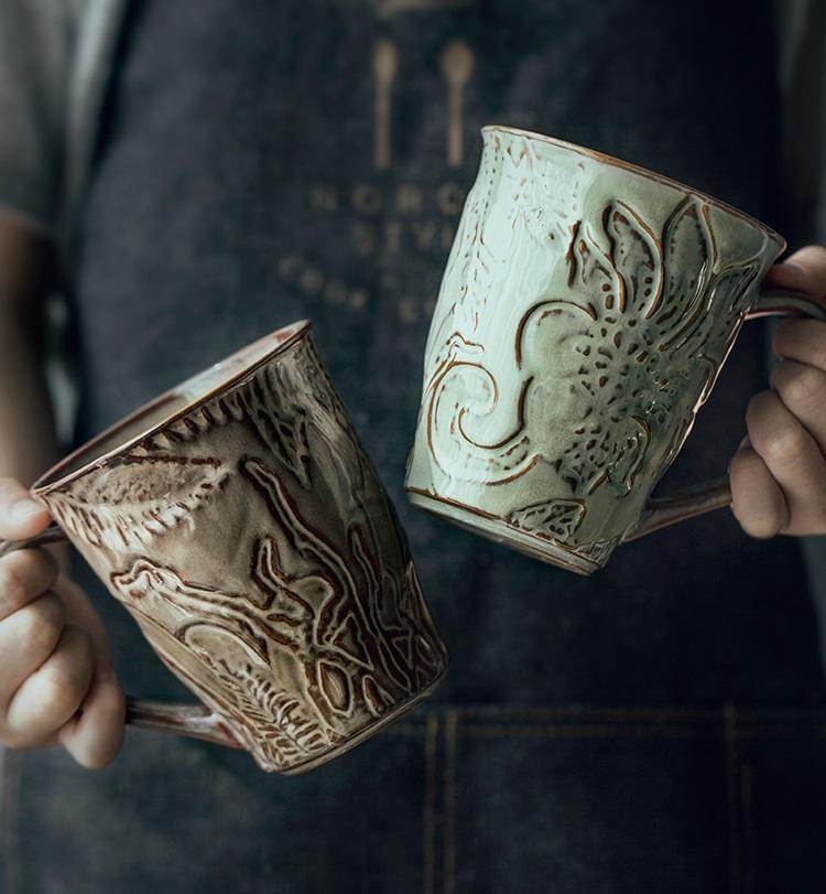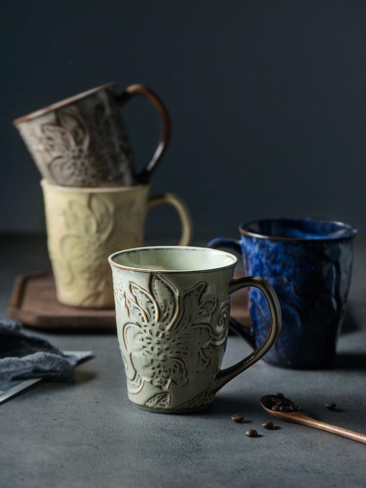 Green Ceramic Coffee Mug, Birthday Gifts, Stoneware Coffee Mugs, Handmade Pottery Coffee Mug, Large Capacity Coffee Cups