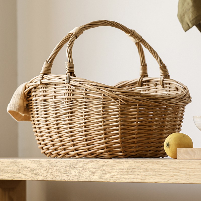 Large Kitchen Storage Baskets, Picnic Storage Basket with Handle, Hand-woven Wicker Storage Basket, Willow Weaving Baskets for Vegetable, Natural Fruit Basket