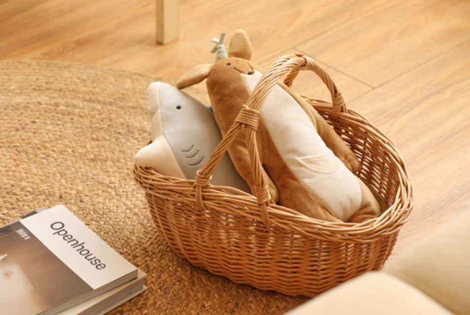 Hand-woven Wicker Storage Basket, Willow Weaving Baskets for Vegetable, Small Picnic Storage Basket with Handle, Natural Fruit Basket, Kitchen Storage Baskets
