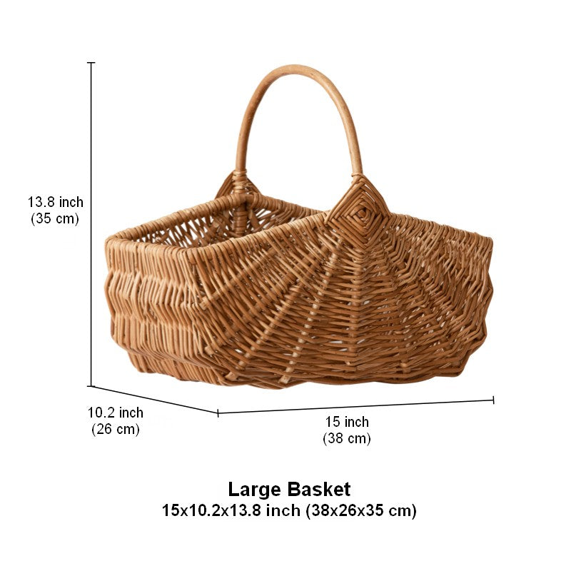 Large Picnic Food Basket with Handle, Natural Hand-woven Wicker Storage Basket, Lovely Willow Weaving Baskets for Vegetable, Natural Fruit Basket, Kitchen Storage Baskets
