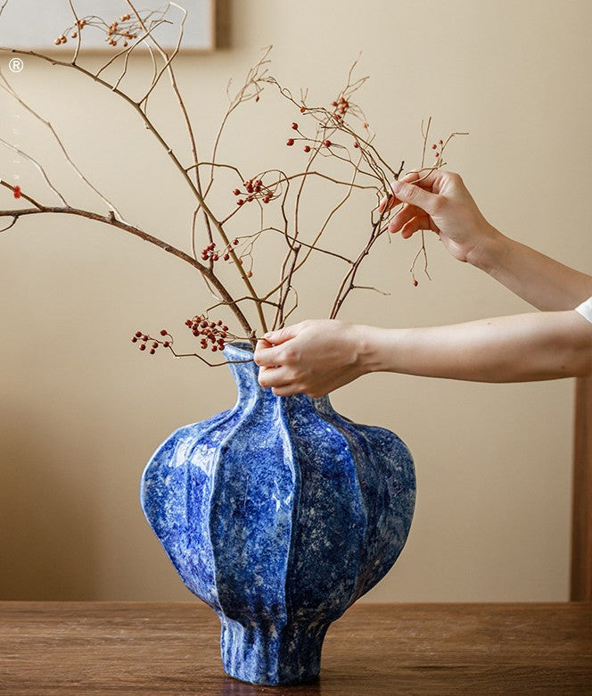 Modern Pottery Flower Vases, Handmade Water Holding Flower Vases, Centerpiece on Dining Table, Blue Ceramic Bud Vases, Tall Flower Vases on Table