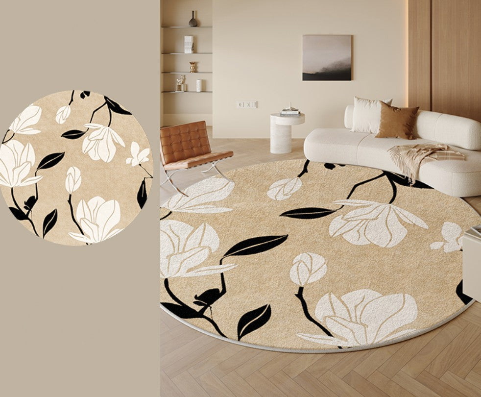 Modern Round Rugs under Coffee Table, Circular Rugs for Dining Table, Abstract Contemporary Rugs for Bedroom, Modern Cream Color Rugs for Living Room