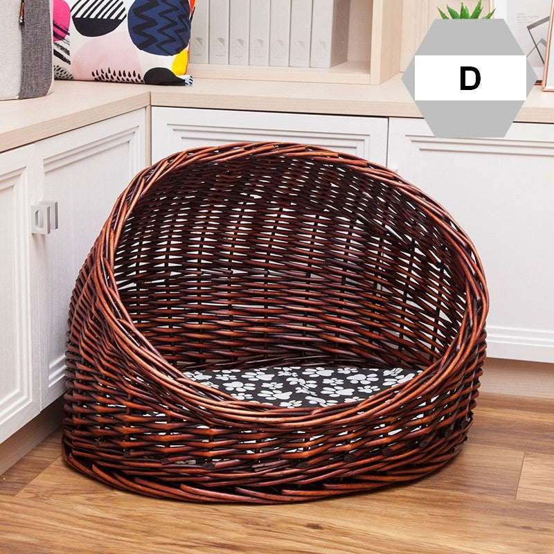 Wicker Cat House Basket with Washable Cushion for Indoor Cats and Dogs, Rattan Cat Bed