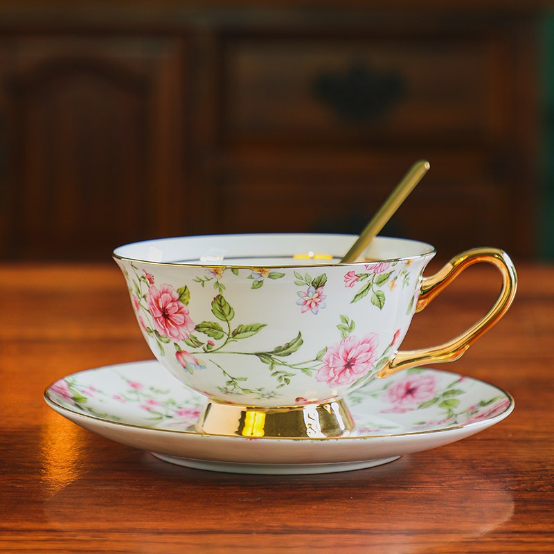 Porcelain Tea Cup Saucer Set of 2 Cups, Flower Tea Cup and Saucer Set in Gift Box, Floral Ceramic Coffee Cup with Saucer, Beautiful British Tea Cup and Saucer