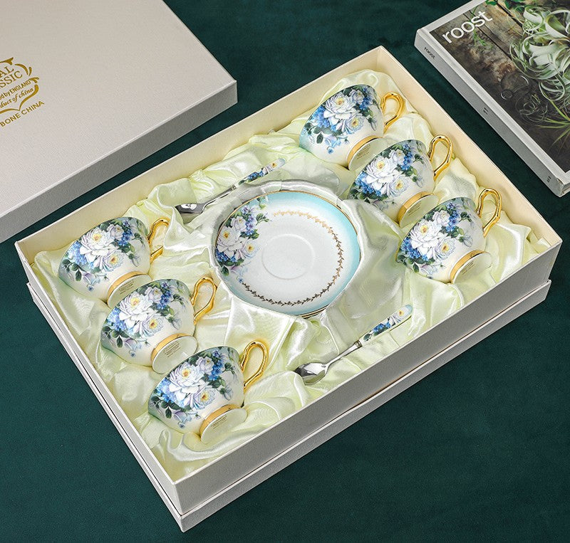 Elegant British Ceramic Coffee Cups, Unique Tea Cup and Saucer in Gift Box, Royal Porcelain Tea Cup Sucer Set, Rose Flower Pattern Ceramic Cups