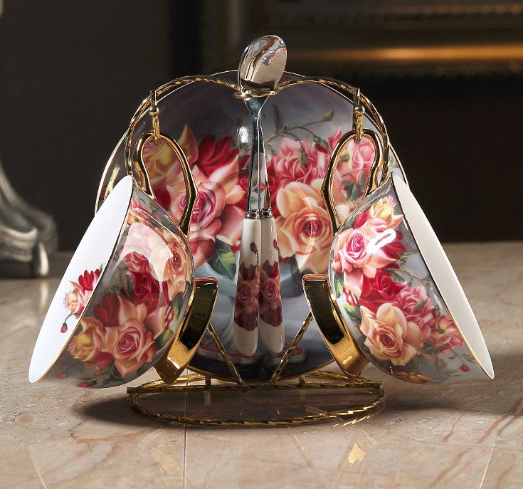 Ceramic Tea Cup and Saucer in Gift Box, Rose Flower Royal Porcelain Tea Cup Saucer Set, Elegant Ceramic Coffee Cups, Beautiful British Tea Cups