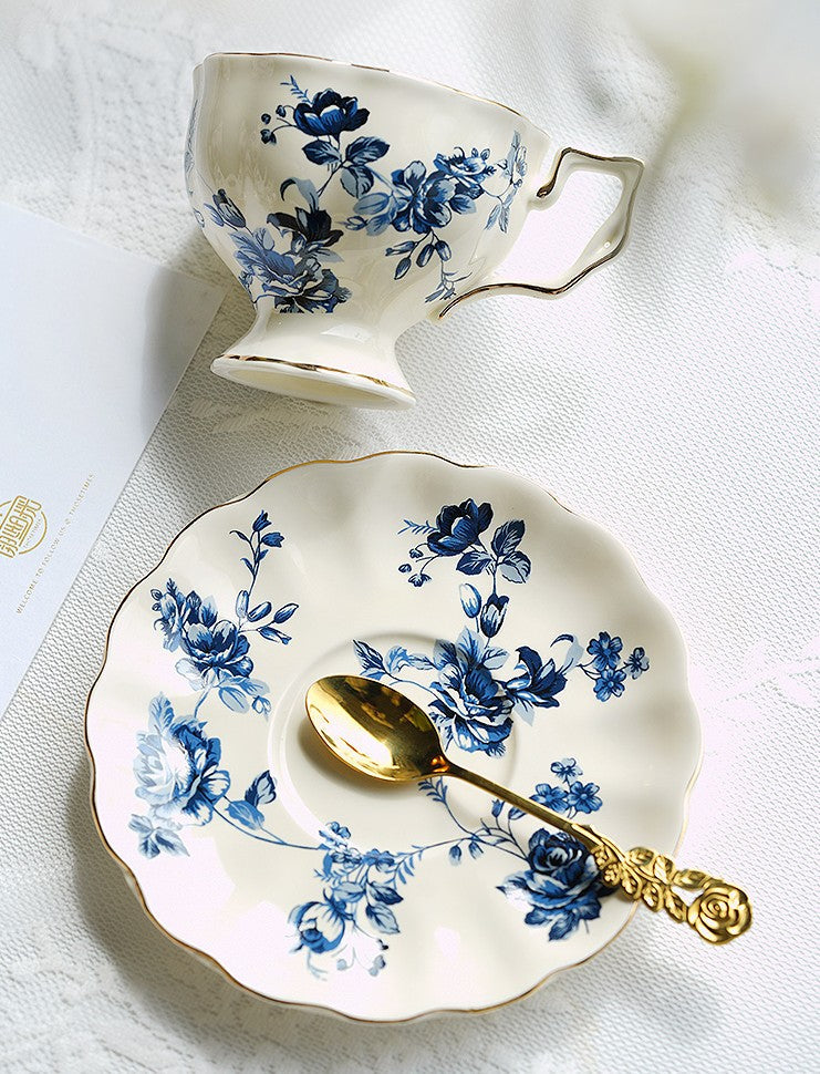Elegant Vintage Ceramic Coffee Cups for Afternoon Tea, Royal Ceramic Cups, French Style China Porcelain Tea Cup Sucer Set, Unique Tea Cup and Saucers