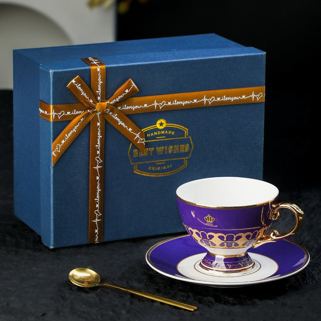 Royal Tea Cup and Saucer in Gift Box, Porcelain Tea Cup Saucer Set, 8 Ounce Ceramic Coffee Cups, British Tea Cup set