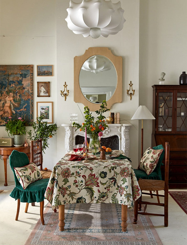 Rustic Garden Floral Tablecloth for Round Table, Spring Flower Table Cover for Kitchen, Modern Rectangular Tablecloth Ideas for Dining Room Table