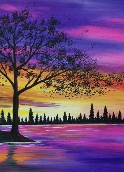 Simple Tree Painting, Easy Hand Paitned Canvas Art, Simple Acrylic Paintings, Easy Painting Ideas on Canvas, Simple Landscape Paintings