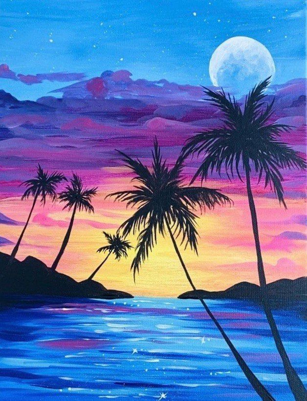 Small Canvas Art on Canvas, Small Seashore Beach Palm Tree Painting, Simple Acrylic Paintings, Simple Landscape Artwork, Easy Painting Ideas on Canvas