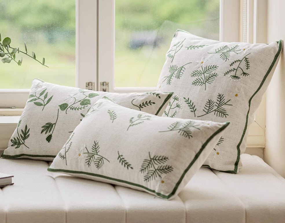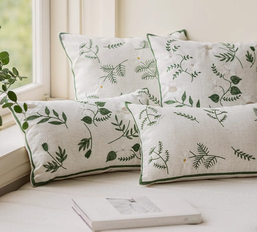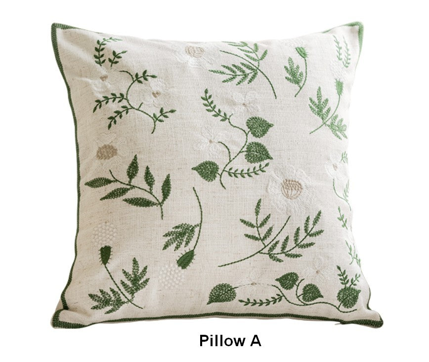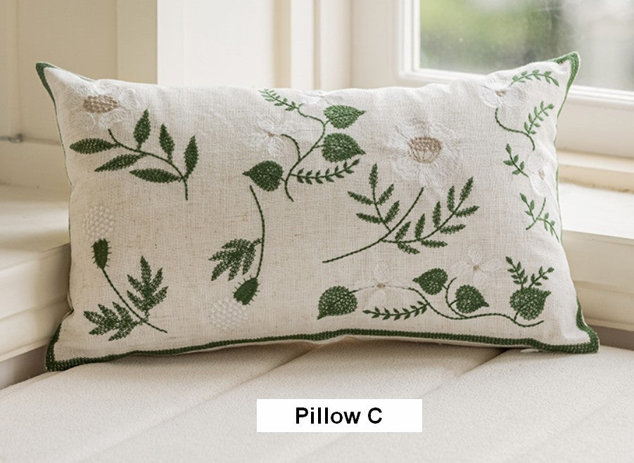 Spring Flower Decorative Pillows for Dining Room, Embroider Flower Cotton Pillow Covers, Decorative Pillows for Sofa, Farmhouse Decorative Pillows for Couch-LargePaintingArt.com