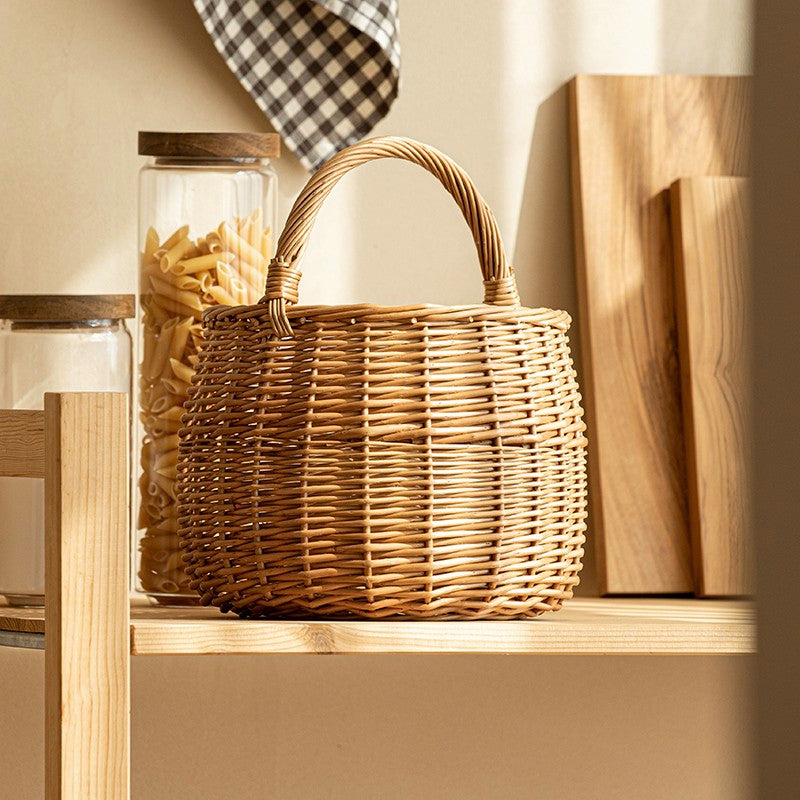 Hand-woven Wicker Storage Basket, Willow Weaving Baskets for Vegetable, Small Picnic Storage Basket with Handle, Natural Fruit Basket, Kitchen Storage Baskets