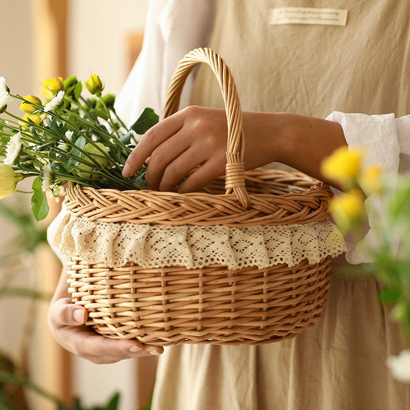 Storage Basket for Shelves, Picnic Storage Basket with Handle, Hand-woven Wicker Storage Basket, Natural Fruit Basket, Willow Weaving Baskets for Kitchen